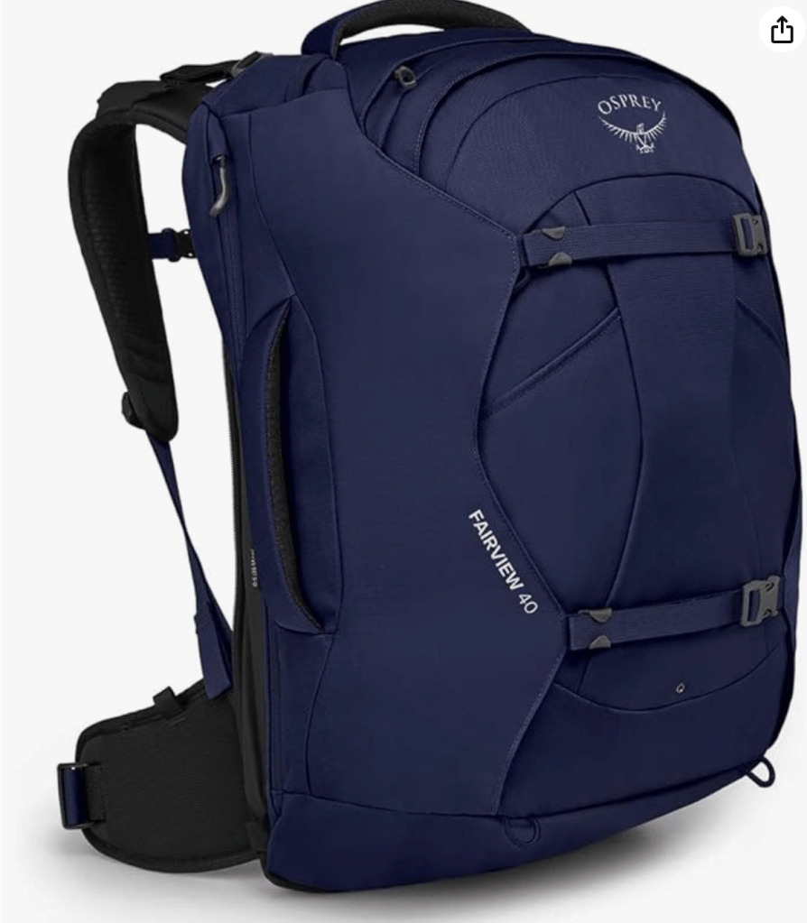 私は機内手荷物で周遊したので、規格内のOprey Fairview40のモデルを選びました。