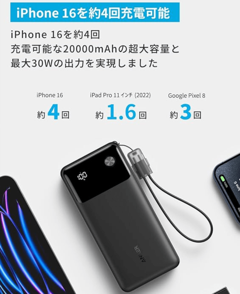 スマホの使用頻度が高い私にとって欠かせないのがモバイルバッテリー。
