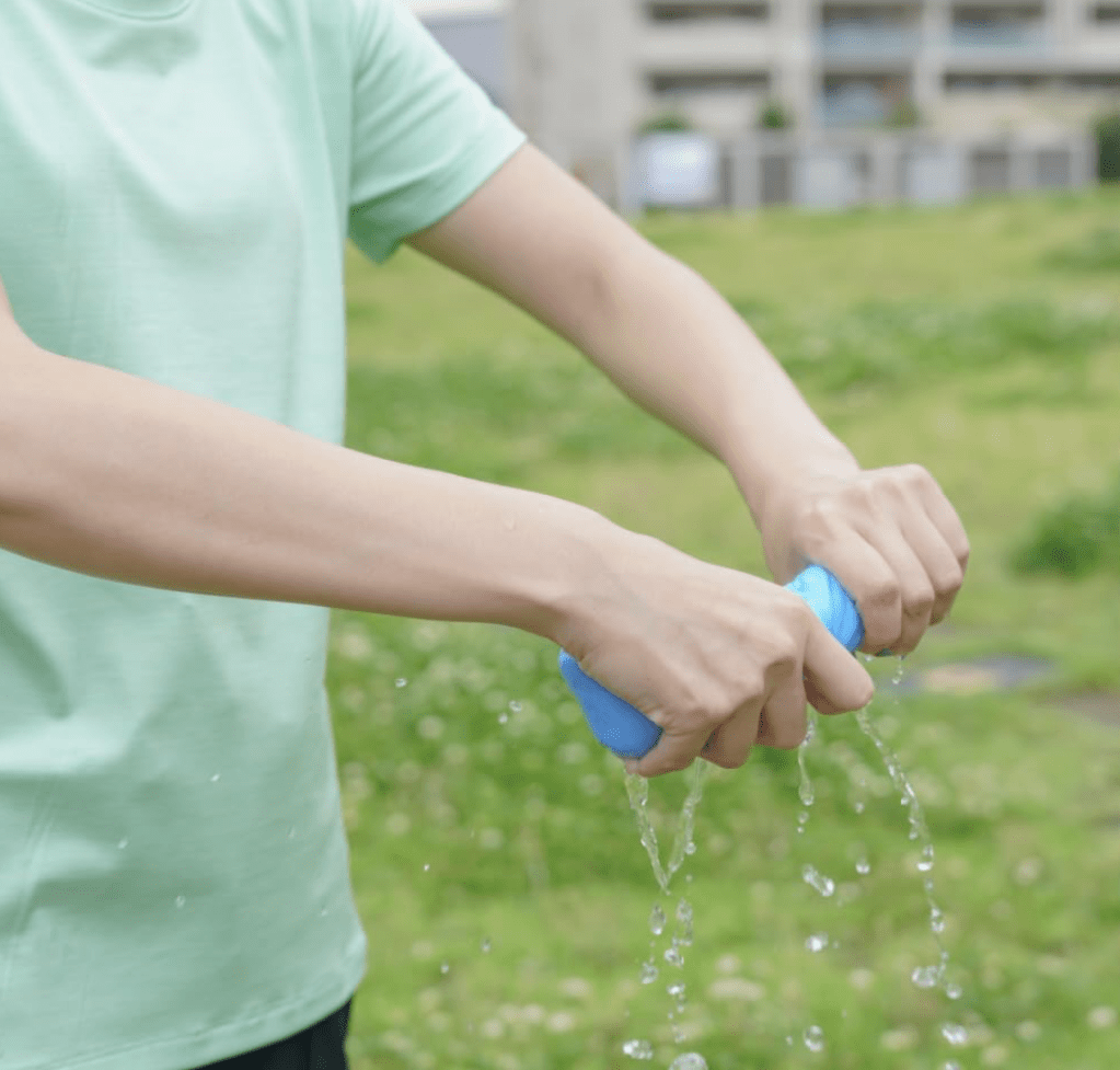 スイムタオルは絞ればすぐにカラッと乾くので、力要らずで何度も簡単にできます。